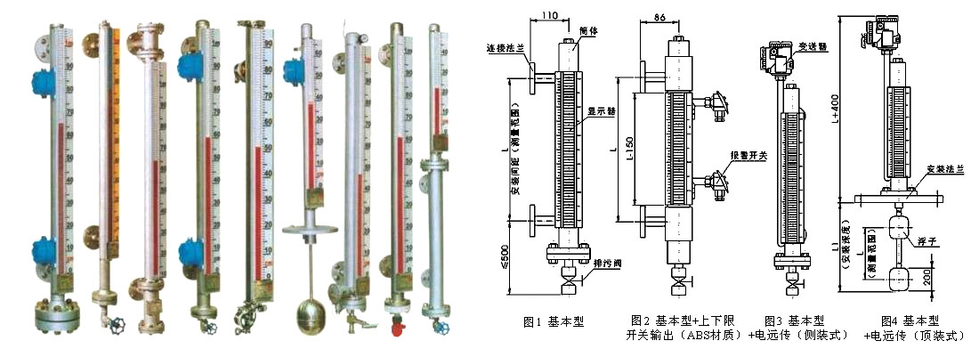 另外进行法兰的接续能够接受定制状态下液位高度的仪表控制,指示器的组成为磁性色片,本体管当中的磁性浮球随着液位上升或者出现色片翻转的过程中,可以将液位的高度显示出来,同时也能够在本体管上面另外加上一个磁性开关装置或者远端传递变送器,将开关信号做输出或者信号数据的模拟。